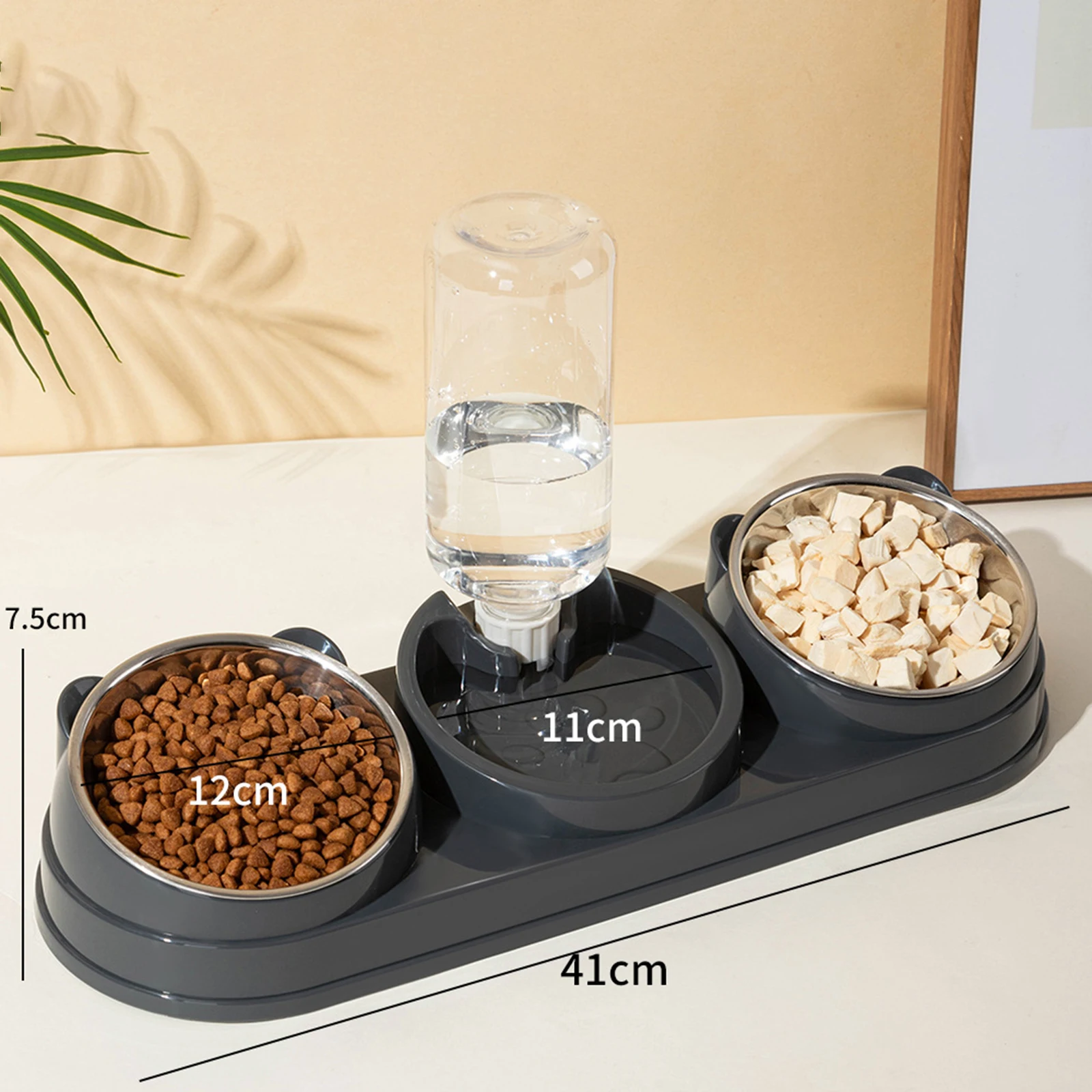MainKey3: Triple Cat Food Bowls with Water Dispenser