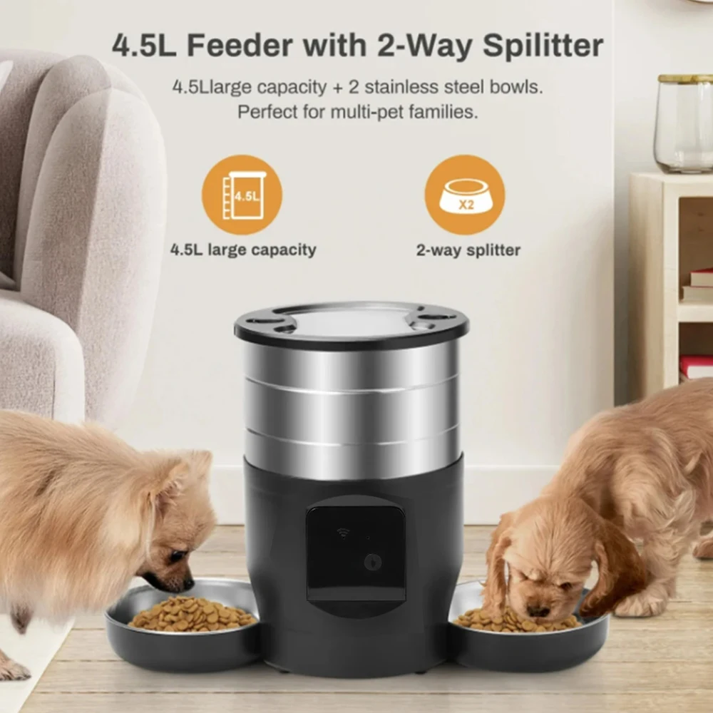 4.5L Ifi version pet feeder intelligent food dispenser with dual bowls, used for cat and dog dry goods accessories