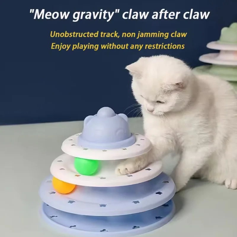 4 Level Interactive Cat Toy Ball Tower with Turntable Roller Track Intelligence Training Puzzle Game for Indoor Kitties Toys