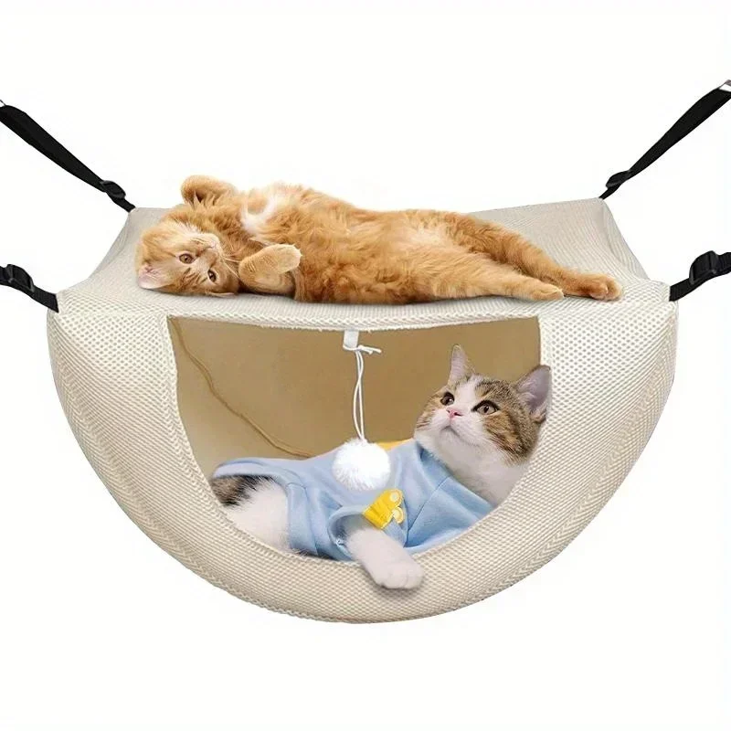 Breathable Mesh Hanging Pet Bed - Adjustable Cat Hammock for Indoor Use, Comfortable Suspended Sleeping Nest with Metal Frame