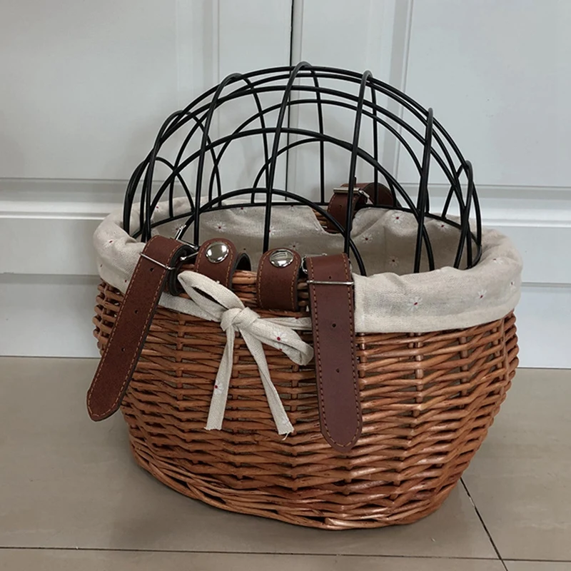 Cat Dog Bicycle Front Handlebar Basket Pets Seat Handwoven Wicker MTB Road Bike Basket Pet Cat Dog Carrier