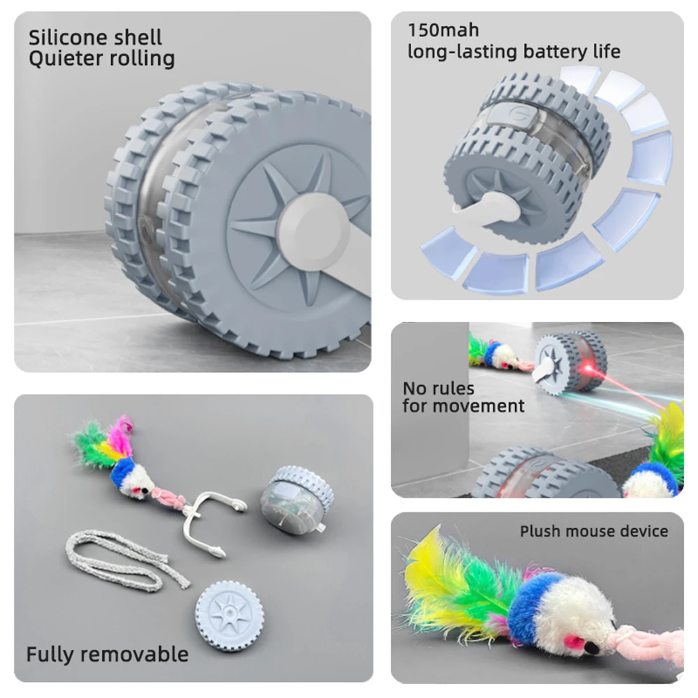 Cat Interactive Ball Toy, Automatic Rolling Ball with Tail, Rechargeable Smart Pet Interactive Toy, Intelligent Mouse for Cat