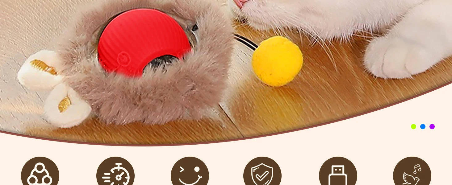 【Intelligent Tapping Wake-up】Each mode automatically enters sleep mode after 5 minutes of work and can be tapped to wake up; if not woken up in sleep mode for 30 minutes, the cat ball toy will be automatically shut down