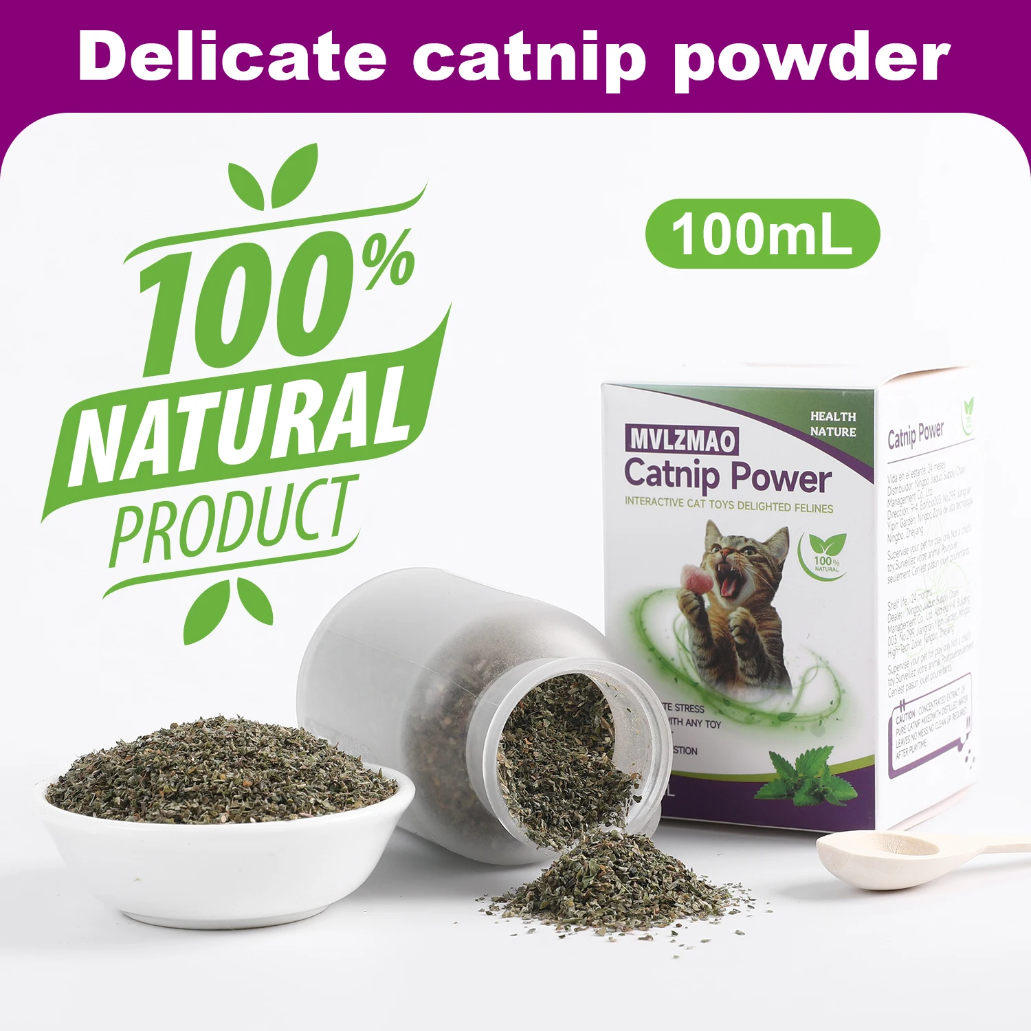 Catnip+Silvervine for Cats & Kittens Safety-Cut Premium Fine Cat Nip Blend Silvervine + Wooden Spoon,100 ML,Create a Monster!