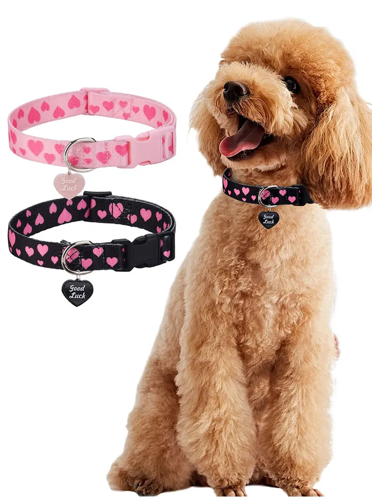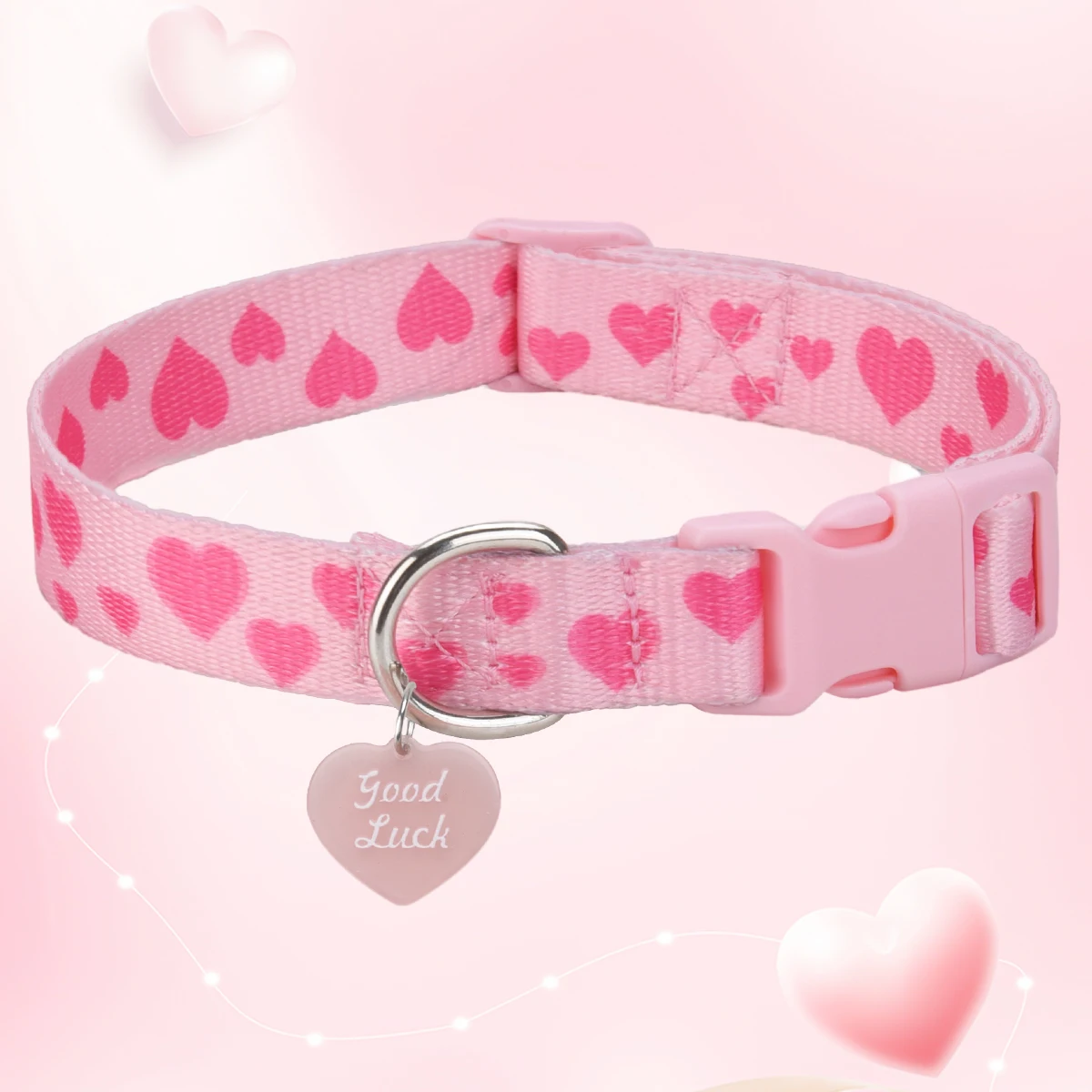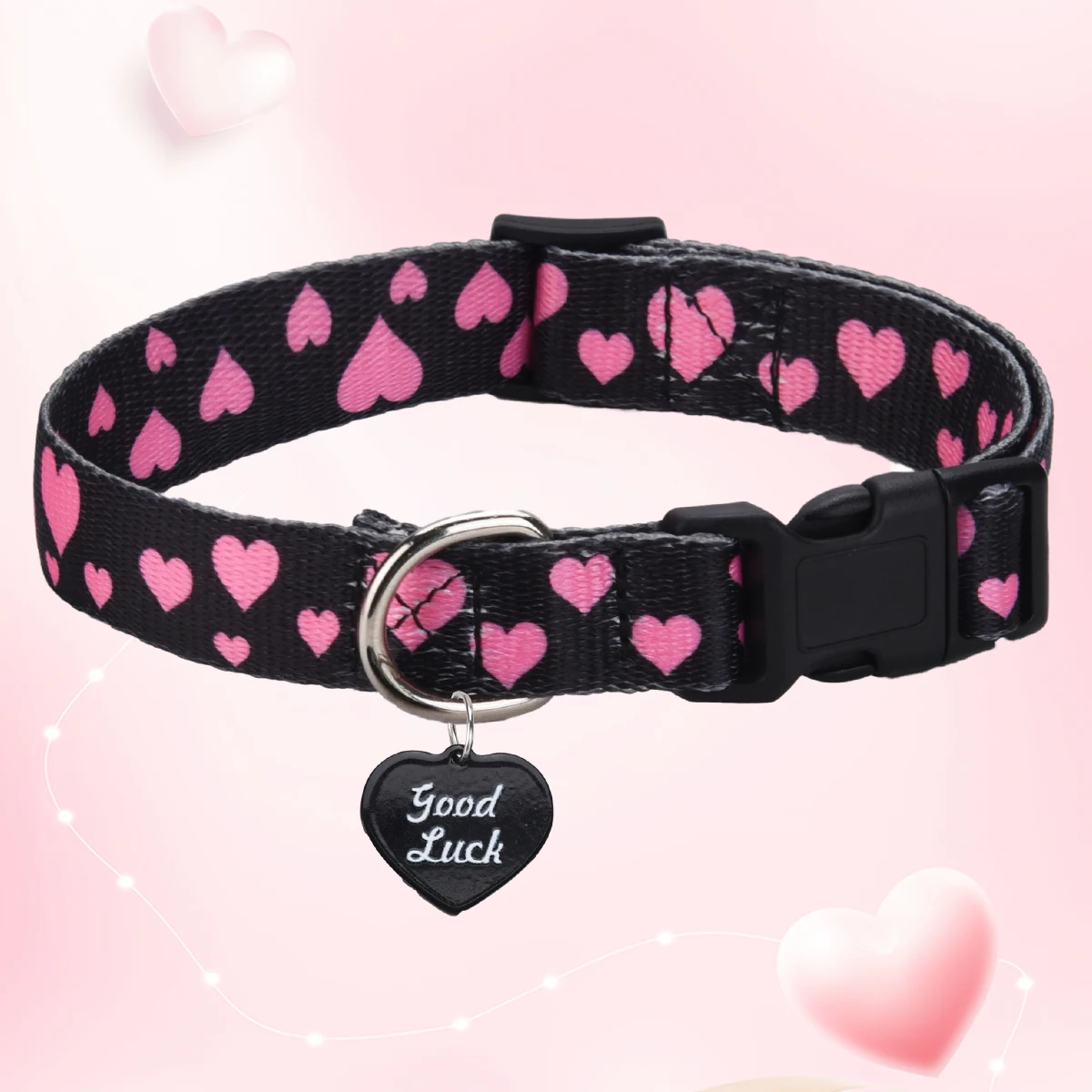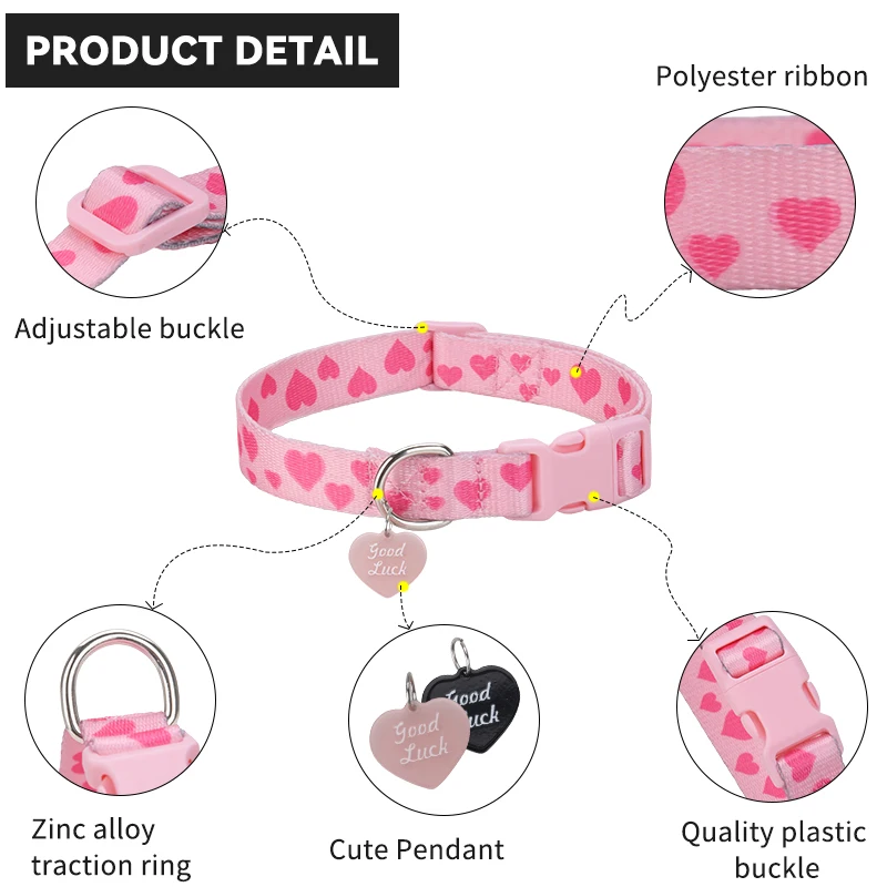 CP613--love printed pet dog & cat collar, high density printed ribbon and exquisite pendant, durable buckle.