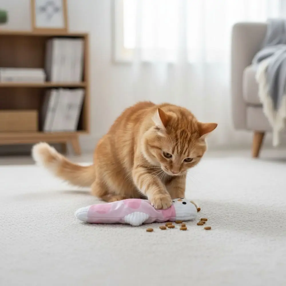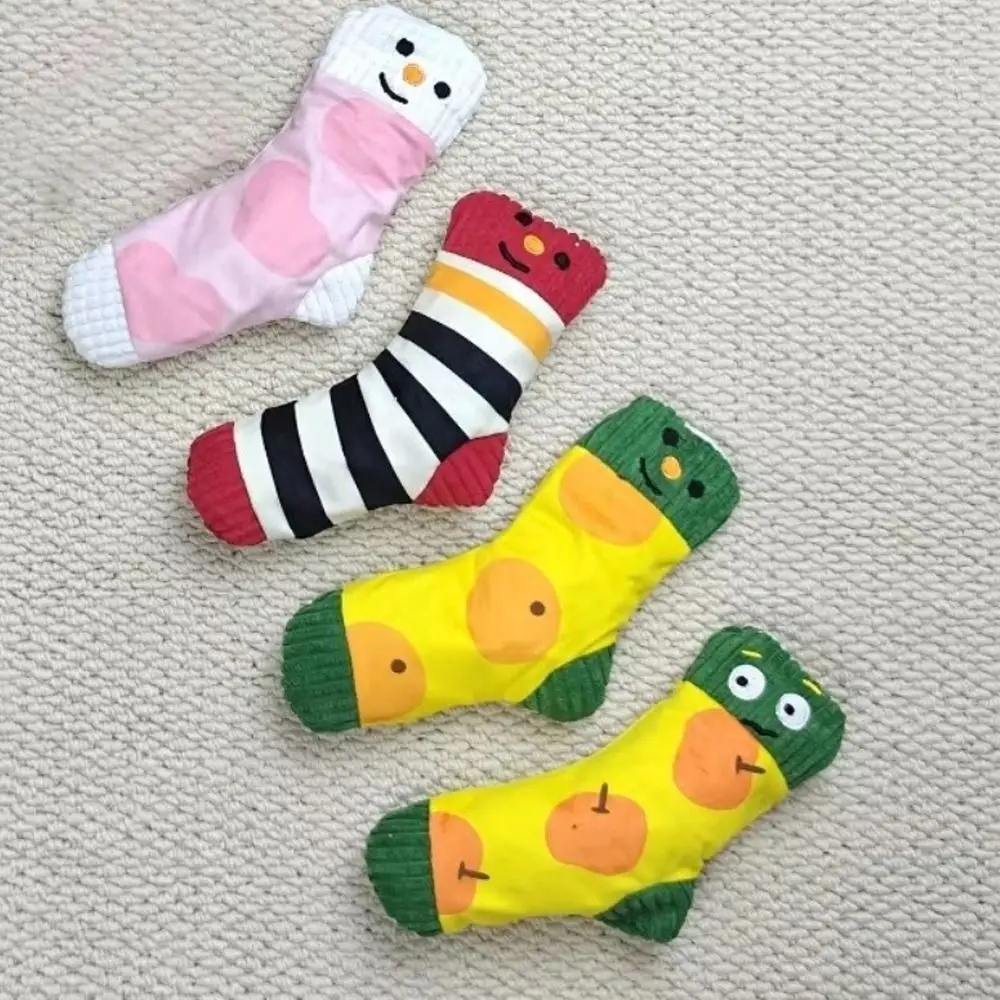 Cute Sound Making Pet Treat Dispenser Bite-Resistant Durable Chew Toy Squeaker Cartoon Socks Cat