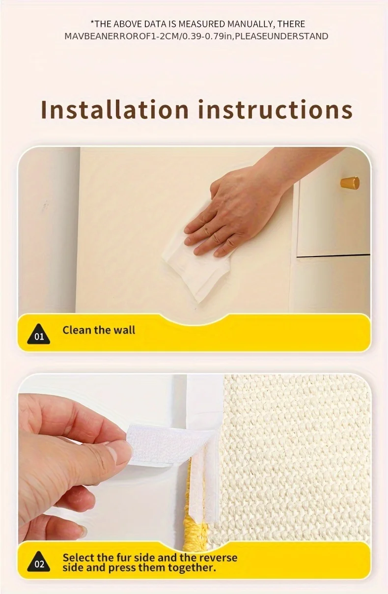 Durable Wall-Mounted Cat Scratching Post & Mat - Stitched Edges,Soft Fabric for Indoor Clawing Play,Space-Saving Design for Cats