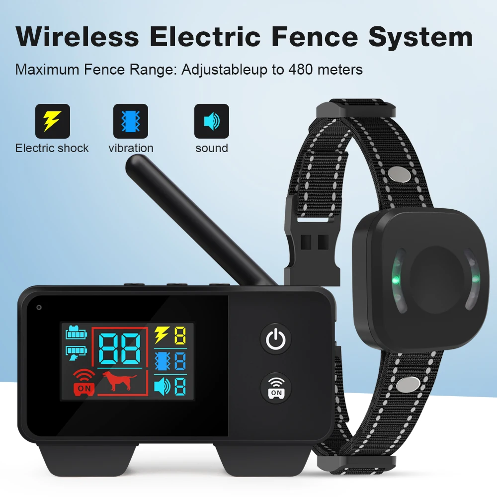 Electronic Pet Fence System 480M GPS Wireless Dog Fence Rechargeable Vibration Shock Sound Remote Control Pet Accessories