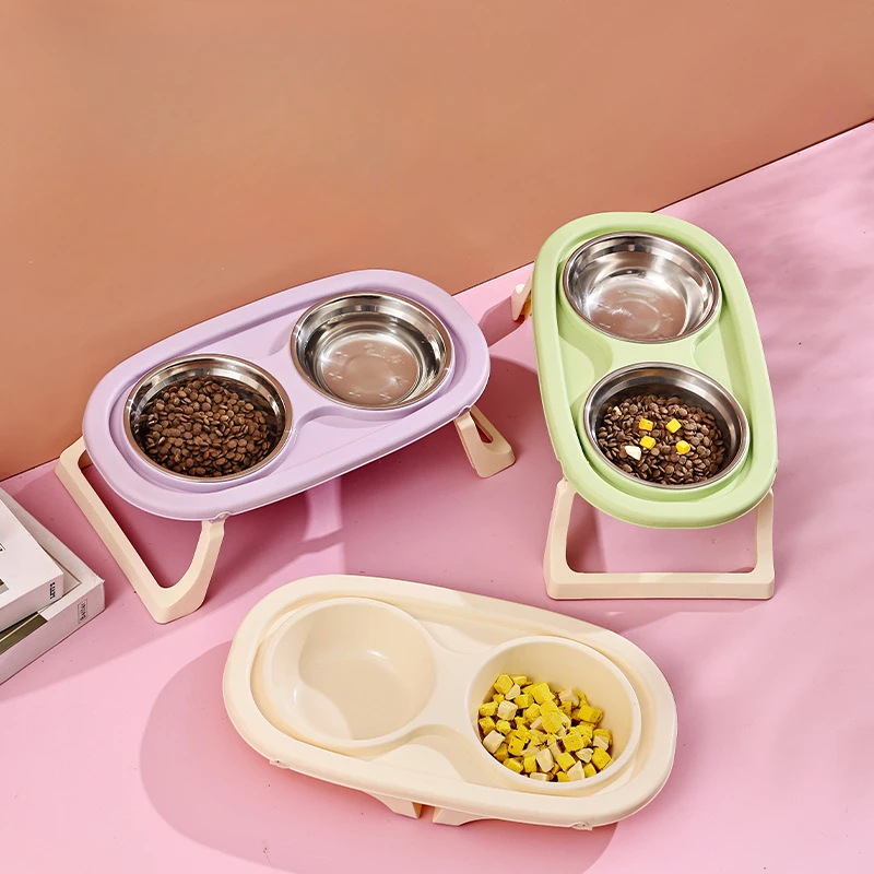 elevated Pet Cat Bowl Feeder Cat Food Bowl With Water Fountain Double Bowl Drinking Raised Stand Dish Bowls For Cats
