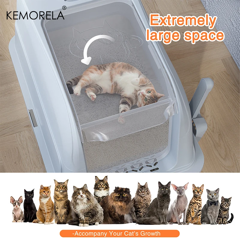 XL Size – Ideal for Big Cats and Multi-Cat Homes Measuring 24"L x 15.9"W x 14.5"H with a wide 9.06" entry, this xl litter box for big cats offers plenty of space for larger breeds and households with multiple cats. The 45L capacity reduces the need for frequent scooping, and the included litter mat helps keep paws—and your home—clean. A premium cat litter box designed for maximum comfort, cleanliness, and convenience