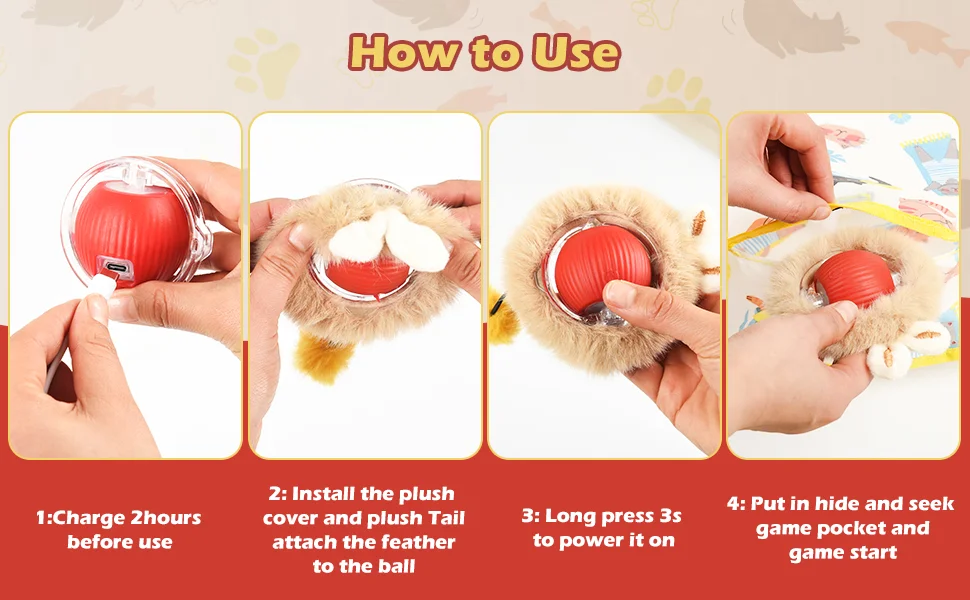 Interactive Cat Chase Toy with USB Rechargeable Rolling Balls - Durable Plastic & Soft Polyester, Cartoon Design for Exercise &